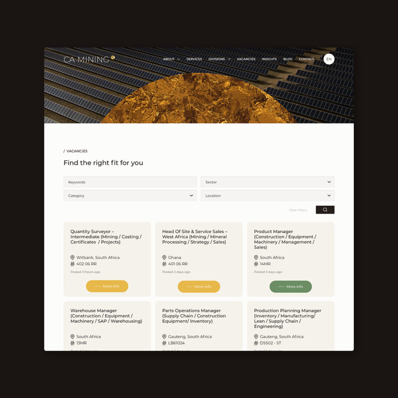 CA Mining and CA Energy have spent more than 18 years connecting exceptional talent with opportunities across the globe. From expatriate assignments to domestic and diaspora recruitment, their strength lies in deep local insight paired with a genuine understanding of their clients’ needs. Whether it’s contingency or executive placements, headhunting, project teams, or retained searches, they offer tailored solutions rather than a one-size-fits-all approach.