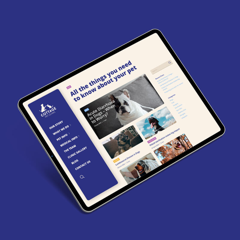 Cottage Vet approached us to revitalise their website and create something representative of their values and mission. They wanted an info hub on subjects relating to your pet and the services Cottage Vet provides so that you can be informed and reassured.