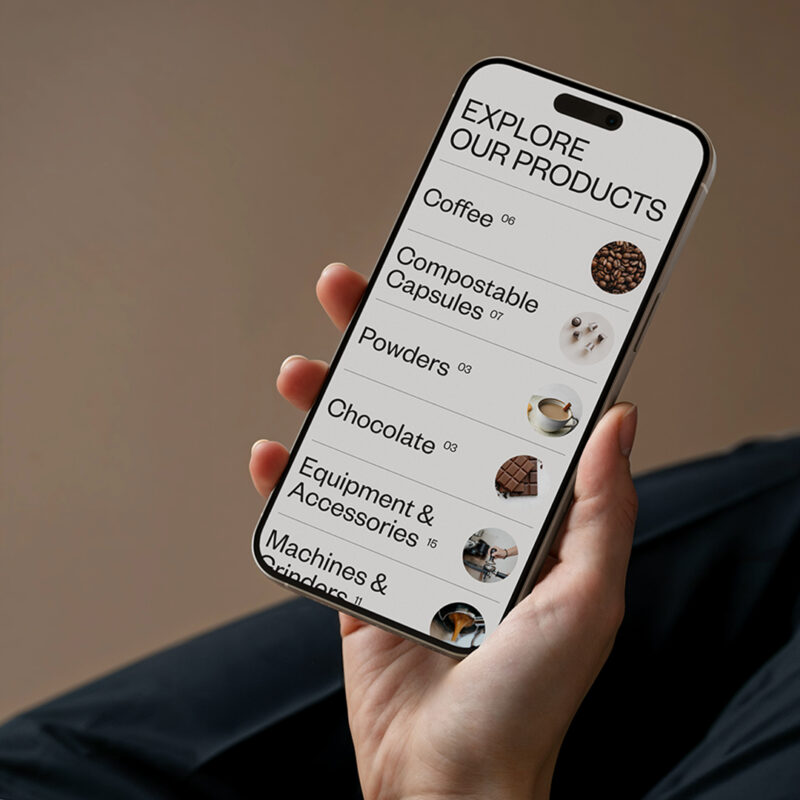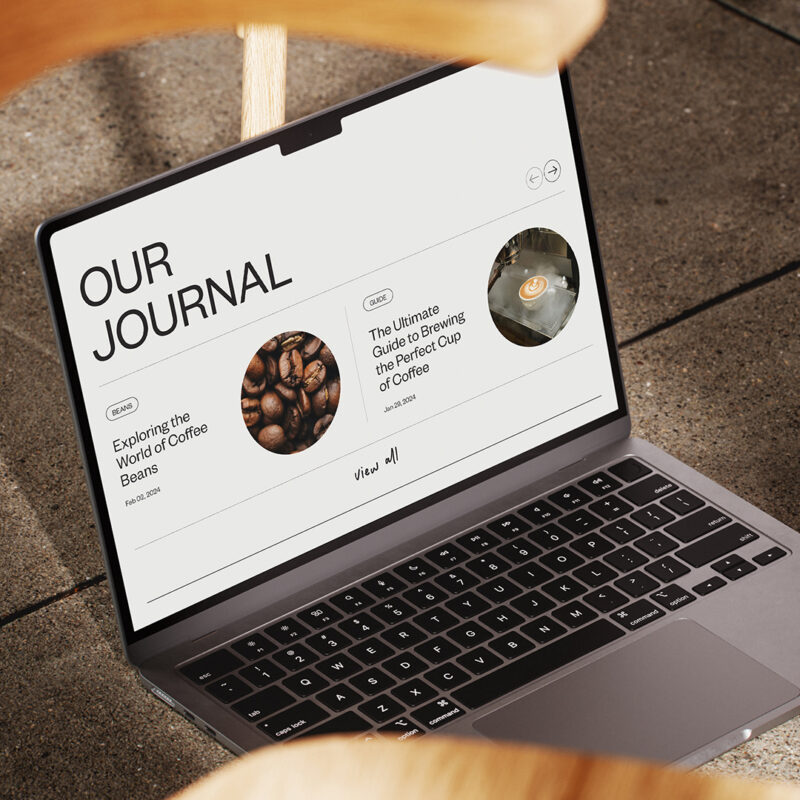The result features a clean, modern design with an earthy colour palette, simplistic imagery, and clean sans-serif typography. The structured layout and large typography allow the content to feel premium and purposeful. It’s a design that feels minimalistic yet rich, much like the craft of brewing a perfect cup of coffee.