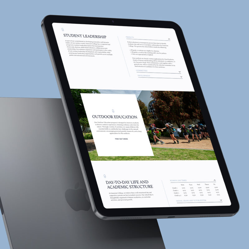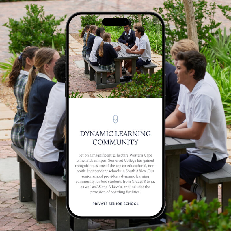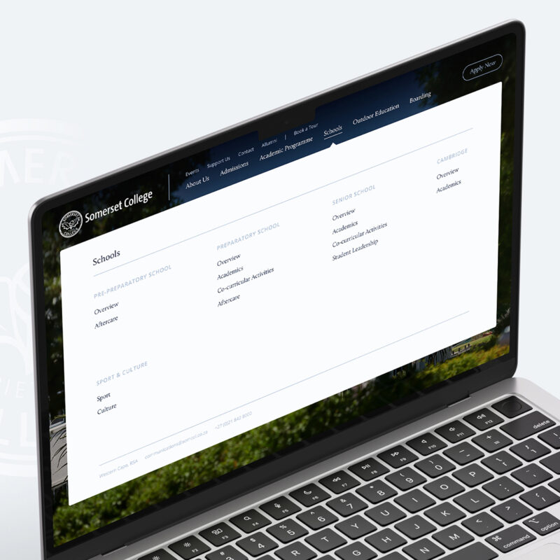 Founded in 1997, Somerset College is an independent, co-educational school set on a beautiful estate in the Winelands of the Western Cape. To honour the school’s heritage and commitment to exceptional education, the website has been refreshed with a clean, straightforward structure. The new design puts the focus firmly on the content, helping parents and caregivers find key information quickly and without unnecessary distractions.