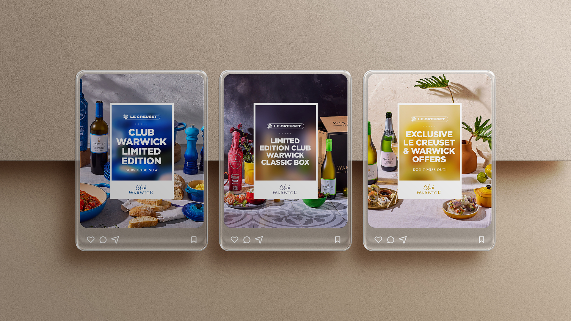 Our objective was to create a visual system that felt bold and contemporary while honouring the narrative of women as storytellers and tastemakers. The campaign needed to seamlessly unite two distinctive brands — Warwick’s refined wine heritage and Le Creuset’s iconic colour-driven identity — within a cohesive social presence.